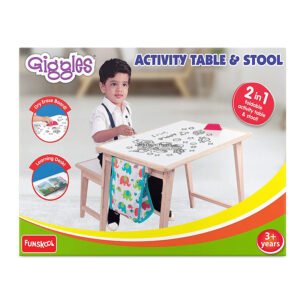 Giggles – 9924300 Activity Table & Stool, Foldable Wooden Study Set with Storage Bag and White Board on Top